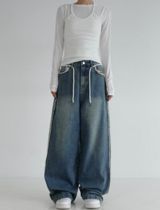 サイドフリンジ デニムワイドパンツ